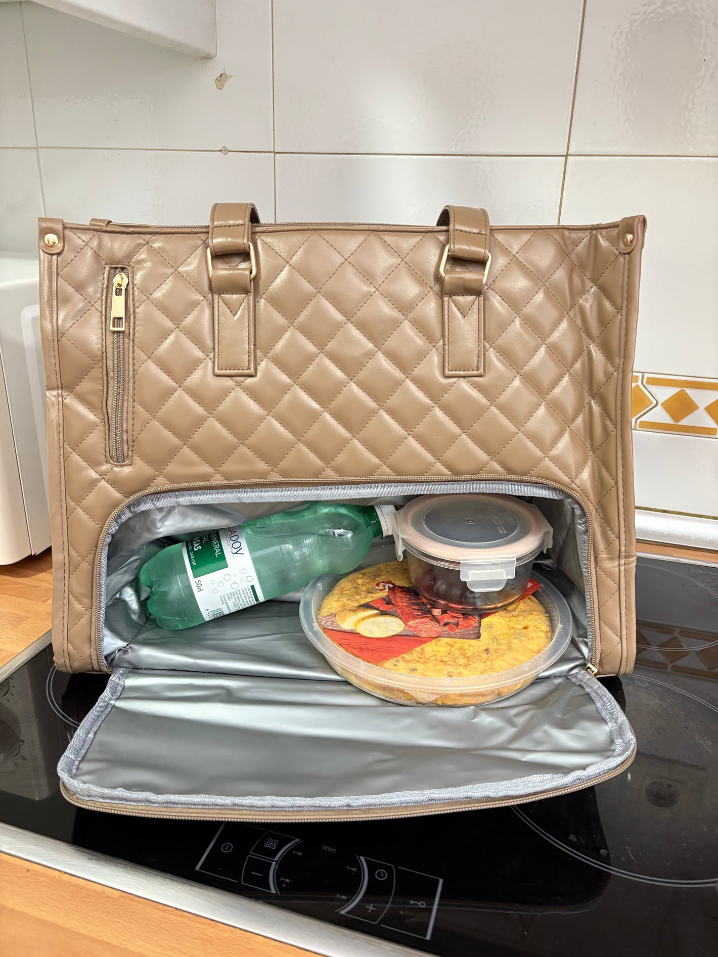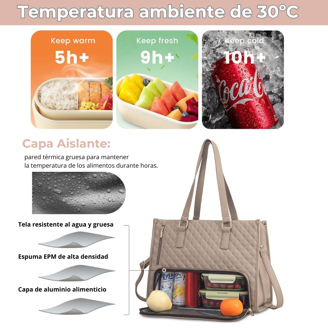 ¿Cansada de hacer malabares con el bolso, la lonchera y el portátil? Este es el único bolso que necesitas. Mantén tu comida fresca y segura en su compartimento aislado, y luce elegante de la oficina a un picnic.